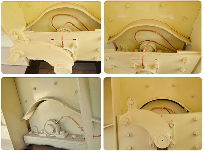 攪拌筒的圓弧部分是焊接成的,攪拌筒內鑲有五種襯板,均用沉頭螺釘與筒體聯接緊固。