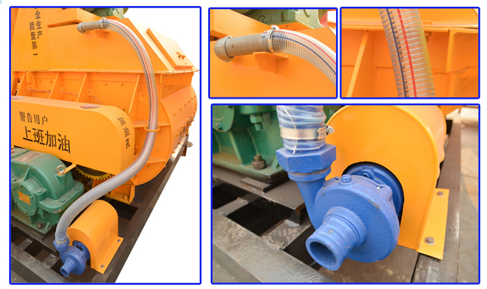 供水系統由電機、水泵、節流閥、清洗裝置、噴水管等組成。拌制混凝土所需的水是由水泵通過節流閥送至噴水管,節流閥可調節水的流量。