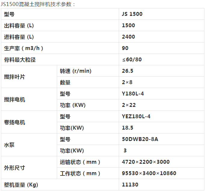 首先,先來(lái)看一下,HZS90混凝土攪拌站之JS1500混凝土攪拌機(jī):